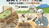 A. 静岡市は海に面しており、地下水位が高いエリアや湿気がこもりやすい住宅地が多いのが特徴です。また、近年では寒さに強い「ヤマトシロアリ」だけでなく、被害の進行が早い「イエシロアリ」の生息域も広がっているため、定期的な点検がより重要になっています。