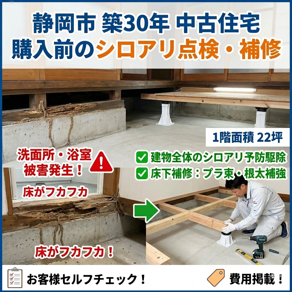 築30年の物件において、シロアリ被害は決して珍しいことではありません。重要なのは、「被害があるかないか」よりも「適切に直されているか」です。