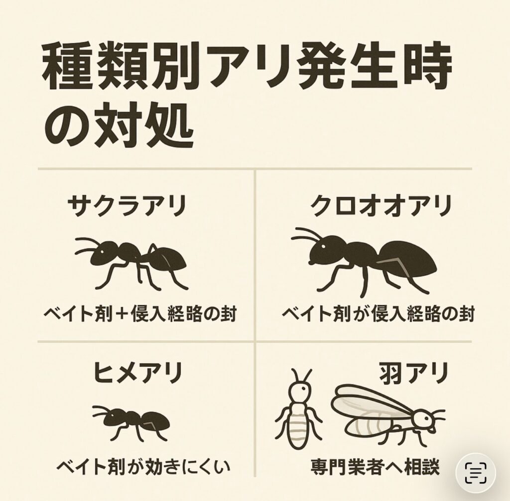 📌 アリの種類による違い