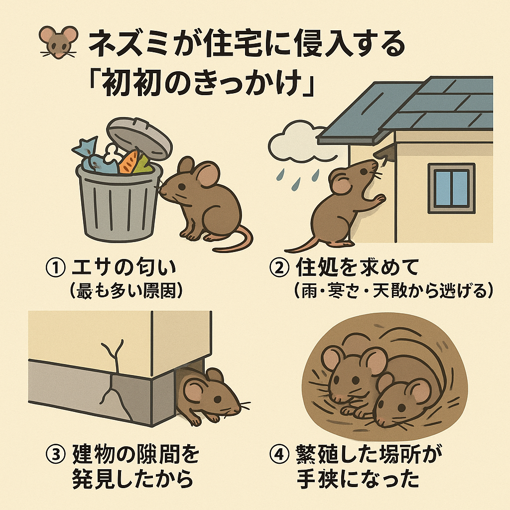 • 家の外から漂う 生ゴミ・ペットフード・米・乾物 の匂いを察知