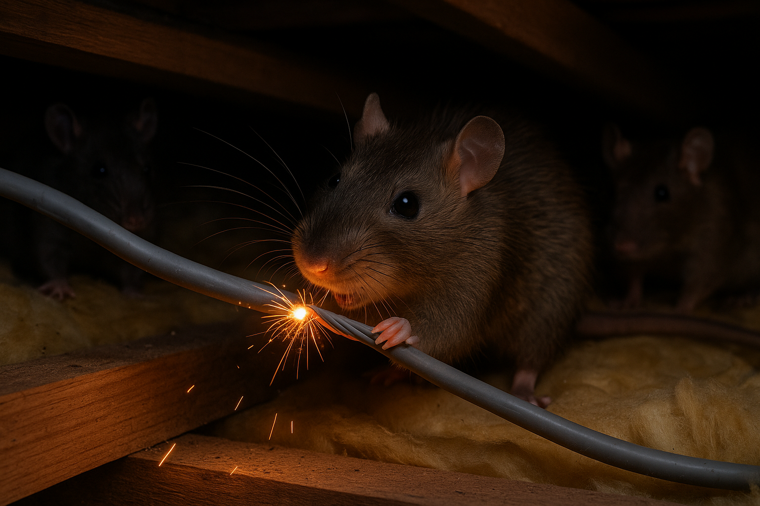 天井裏火災の約20〜30%はネズミ由来と言われています。