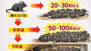 ネズミ クマネズミが天井裏で繁殖するスピードと数 ネズミを駆除せずに放置しておくとあっという間に数が増えてしまいますネズミが天井裏でどの様に数を増やしていくか説明致します。🐭 クマネズミが天井裏で繁殖するスピードと数✅ なぜ「天井裏」は繁殖しやすい?• 人目につかない(静か)• 暖かい(断... 2026.01.08 ネズミ害獣駆除 関係